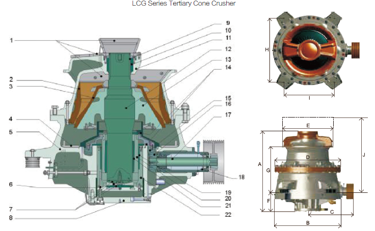 LUCKCOME LCG Series cone crushers can be easily adjusted for different production requirements. With a wide selection of cavities, the same crusher can be used in 2nd,3rd or 4th crushing stages, producing different end product sizes. The stroke change feature allows crusher through-